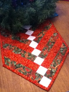 This Christmas must top the ‘thoughtful’ gift scale for me!! The gift giving began on Christmas Eve for me. We are a military family and many holidays must be spent far away from our loved ones. Christmas has always been hard for me in this respect. This year we were invited to a families house that has sort of adopted us. Our children call them Gran and Papa. Our kids play very well with their grand kids and we happen to enjoy the adults our age as well 😉 We enjoyed EXCELLENT food, but the best part was feeling part of a family during the Christmas season. We miss that. Gran also put some hours and hard work into making me a quilted table runner. The pattern is so attractive that I just like to sit and stare at it. It looks amazing under our advent wreath!!!